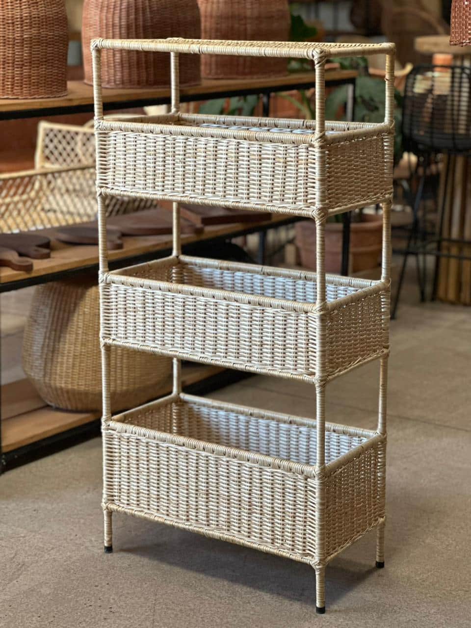 La repisa de mimbre modelo Carolina con estructura de fierro combina funcionalidad y estilo artesanal. Su diseño integra detalles en mimbre que aportan calidez y textura, mientras que la estructura de fierro garantiza firmeza y durabilidad. Ideal para organizar y decorar cualquier espacio con un toque natural y elegante.