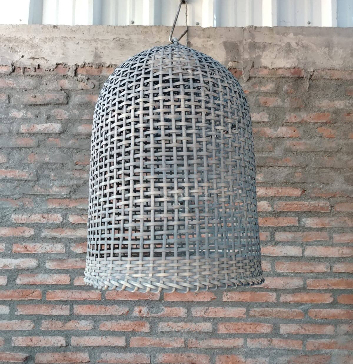 La lámpara de mimbre modelo Jazmín está elaborada 100% de forma artesanal, finamente tejida con la técnica de pan de azúcar, con fibras naturales propias de la zona de Chimbarongo. Su tonalidad refleja el color característico del mimbre natural, resaltando su autenticidad y calidez.