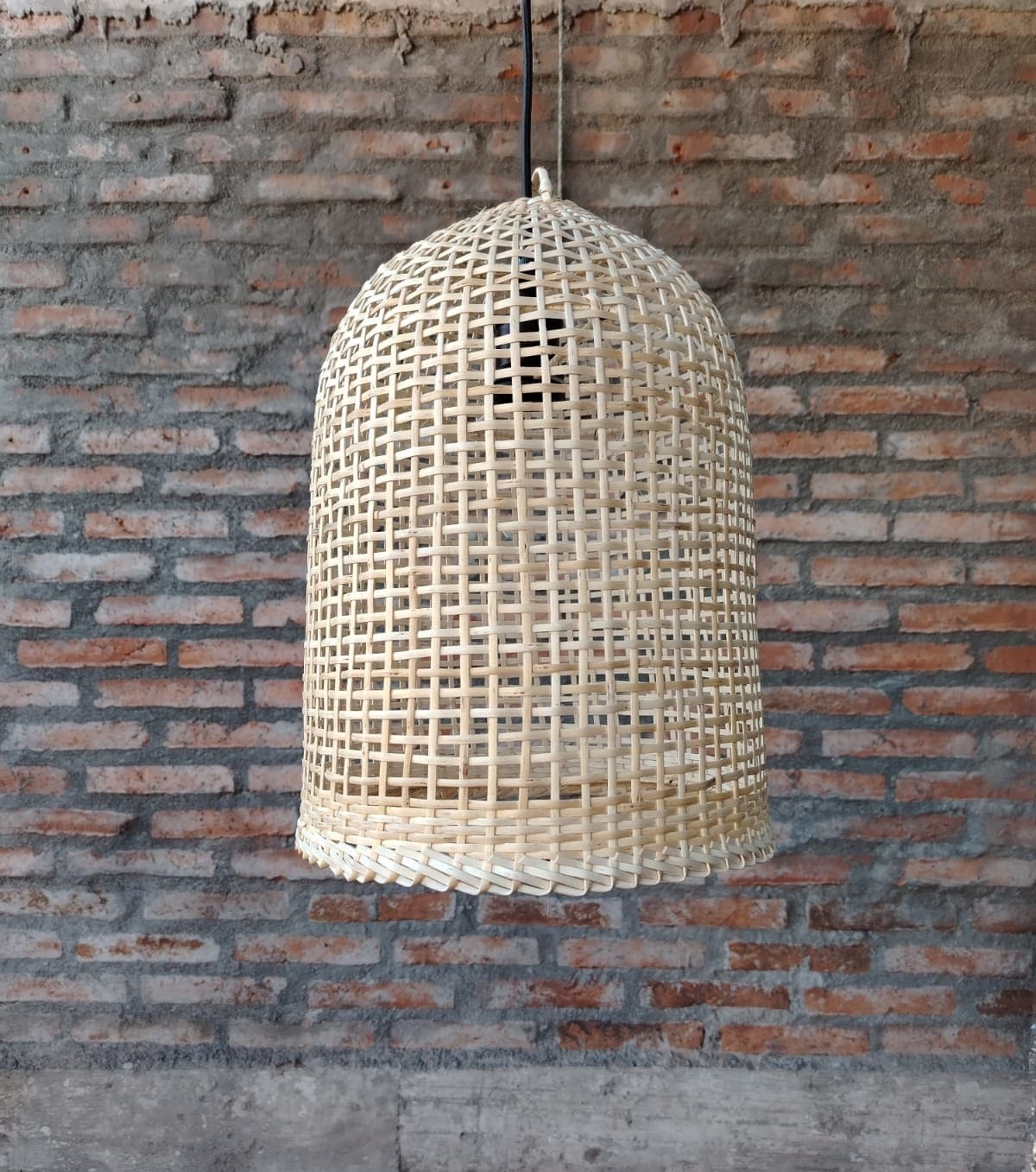 La lámpara de mimbre modelo Jazmín está elaborada 100% de forma artesanal, finamente tejida con la técnica de pan de azúcar, con fibras naturales propias de la zona de Chimbarongo. Su tonalidad refleja el color característico del mimbre natural, resaltando su autenticidad y calidez.